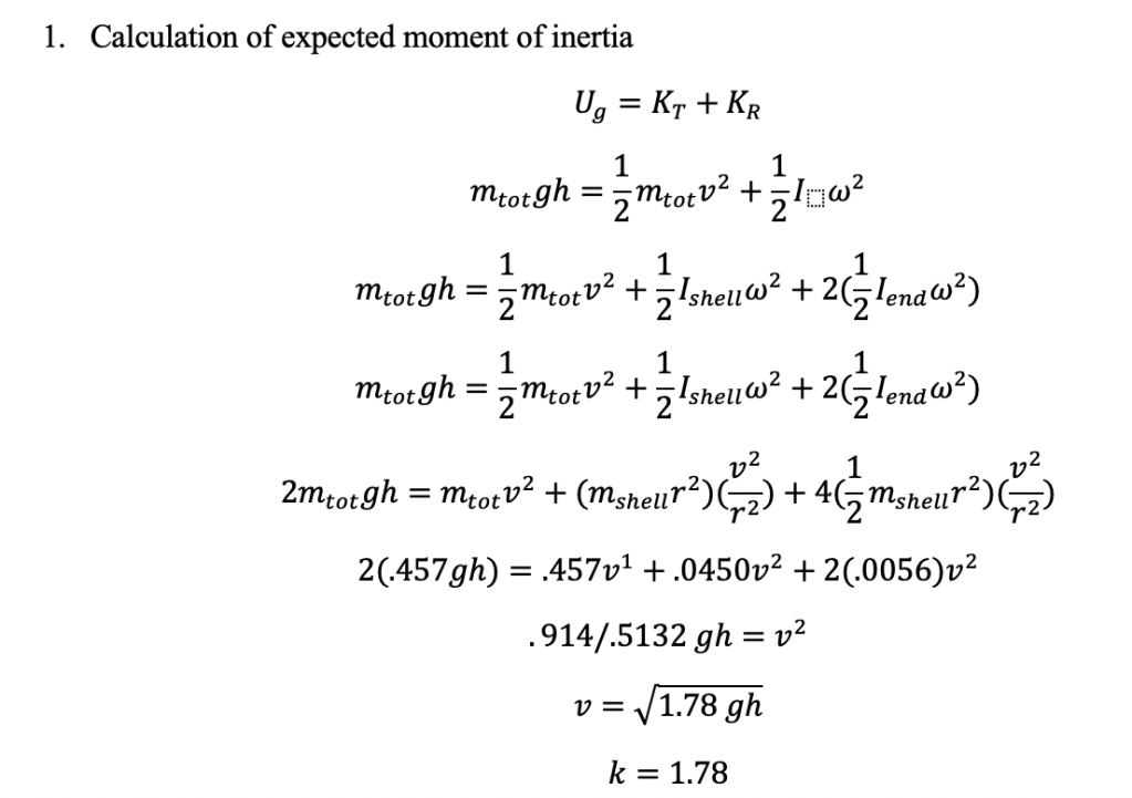 For homework I ask students to develop an expression for ANY object down the ramp. How can we do this? Well one thing worth noting is that every moment of inertia is some object MR². So let’s replace “some number” with k. I tell students they need to figure out the expression and what they will plot to yield a straight line and what the slope will represent.