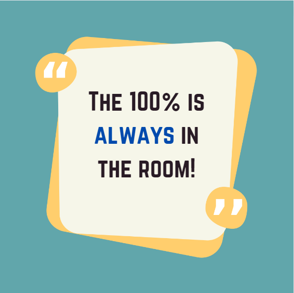 It is a phrase that has become synonymous with my name amongst my students, they know it’s my thing. Whether they are in lab, or whiteboarding problems or working on a retake, I will often announce at some point in the midst of the productive struggle “the 100% is in the room!” it’s met with some eye rolls, but it’s true. And something that’s really important for me to remind them is that the 100% is not in the room because Will got 100%, the 100% is in the room because each student has some piece of knowledge that is valuable to the whole, and if they can come together as a class they can get to the 100%. Regardless of the task, individual students aren’t done until everyone is done. They need to come to consensus on an answer.