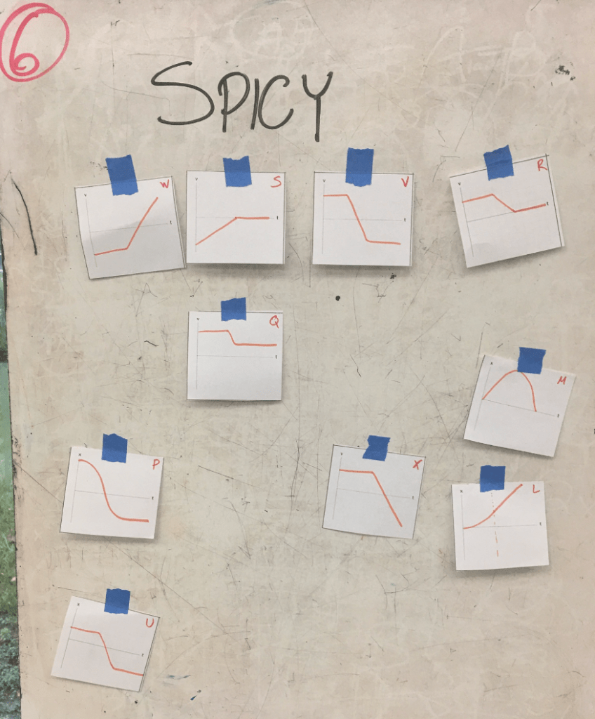 2) Do What you need – give students a task with a number of items and they want to finish as quickly as possible. Alternatively, the task is overwhelming and they don’t even begin. A single graph at a time, that is student selected (hello autonomy!) is manageable. There’s no pressure! No pressure to complete a spicy, no pressure to complete x number of problems. Just do what you need. I had two students go for the spiciest spicy. I made a comment about it and they asked me if they did it correctly if they needed to do more. Ironically, because it was so complex they were going to end up doing 7 different problems in the process anyway!