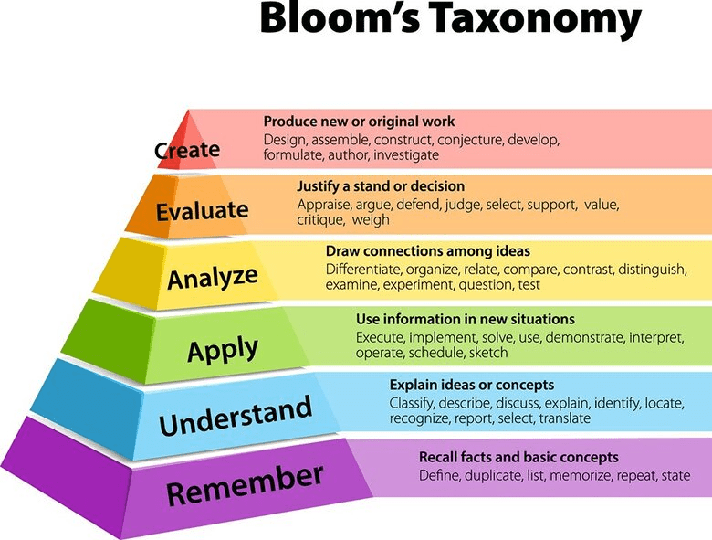 So the workshop starts by introducing students to Bloom’s Taxonomy and we have a conversation about what level they are operating at most of the time, compared to what level they need to operate at for AP Physics. What level do they think they need to operate at in college?
