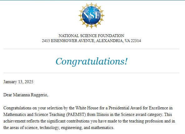 I’ve been awarded the Presidential Award in Excellence for Math and Science Teaching for 2023!