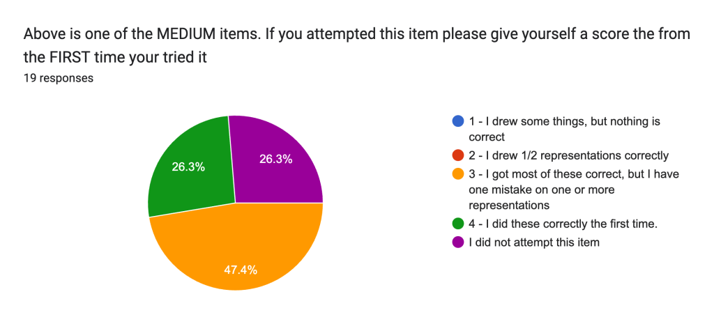 I think the next step here is to overtly integrate the results from these feedback forms into class instruction. I want students to be able to make a strong connection between the practice we do in class and how it can impact their learning, even if they don’t get credit for the actual practice.