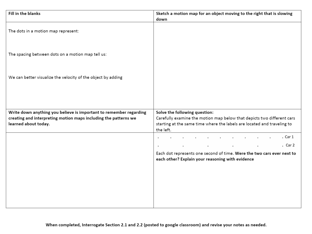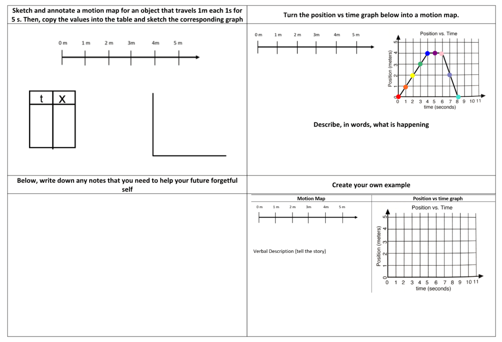 This first set is what students completed after doing the observational experiements dropping bean bags behind a bowling ball and creating their first motion maps: