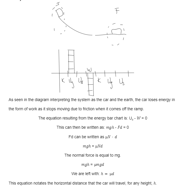 In the version I have students are asked to find a relationship between height and distance. The cool thing about this is it ends up that height is directly proportional to distance and related by the coefficient of kinetic friction alone.