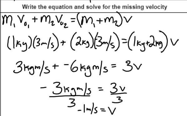 The tables are no more! With this mathematical model right next to the other representations, student can see where everything is coming from. The momentum terms, the momentum values, and the final velocity value at the end.